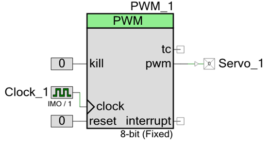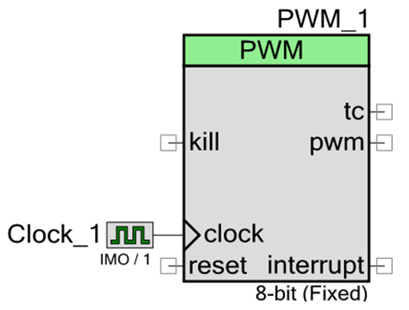 Now drag the configured clock and connect it to the input of the PWM block as shown on Figure 7.