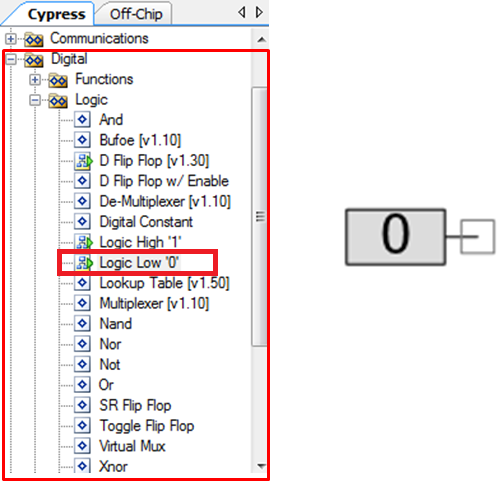 Also, find the Digital Logic Zero component under "Logic" directory. Drag and drop two of these components on your layout.